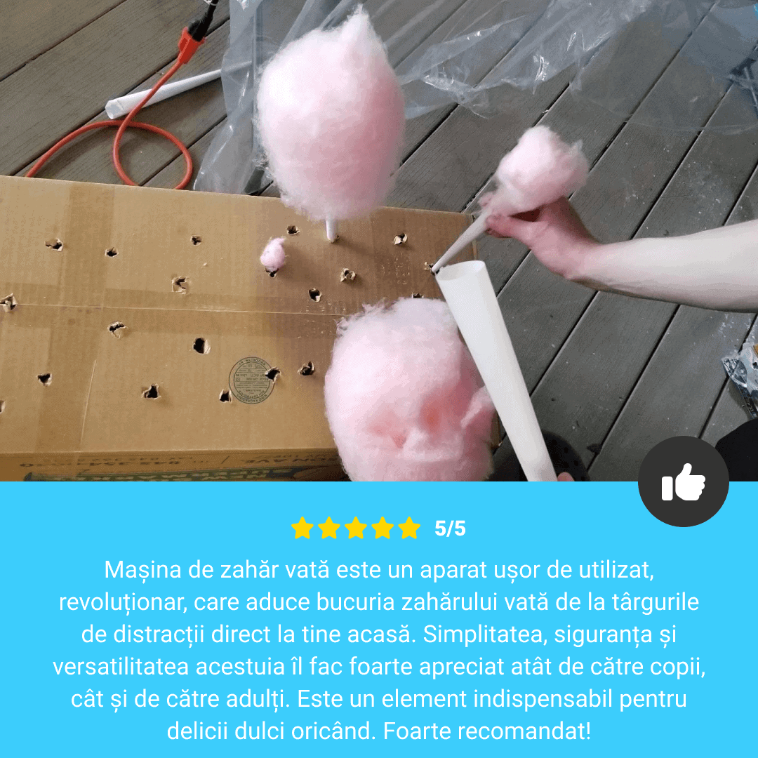 Cu toții am visat la câte un mini aparat de făcut vată de zahăr când ne duceam la bâlciuri. Cu acest aparat de făcut vată de zahăr visele se împlinesc!