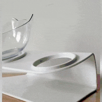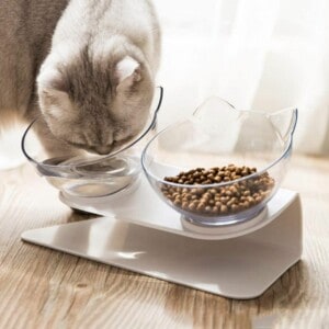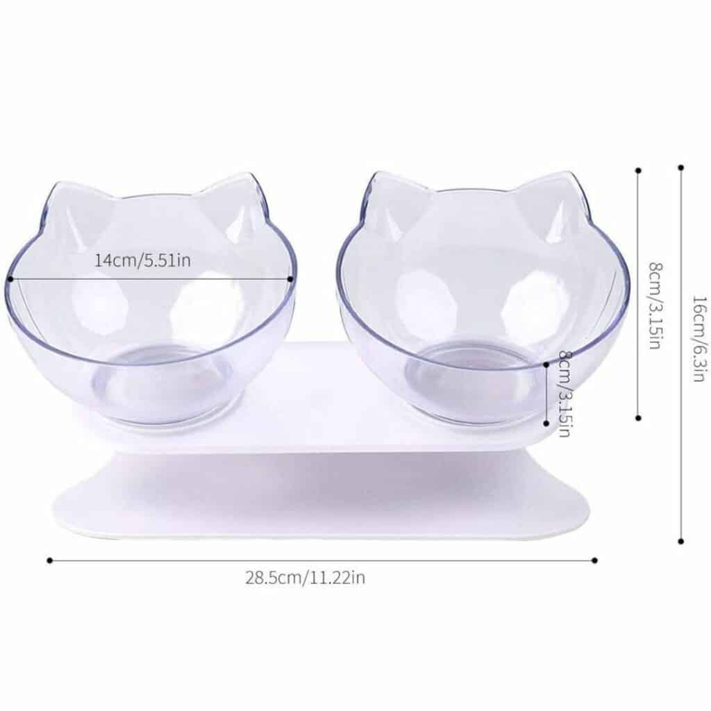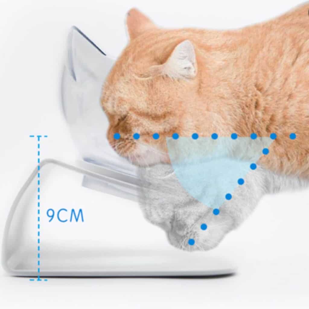 • Poziția bolurilor este la unghi 15°, ca să nu mai pună presiune pe gât și pe coloana pisicii în timpul hrănirii. Este extrem de importantă postura mai ales pentru pisicile care au oasele în dezvoltare.