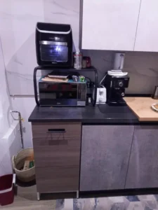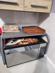 Foarte solid și practic 😊 Ține cuptorul cu microunde fără nicio problemă și tot mai rămâne loc dedesubt pentru alte lucruri.