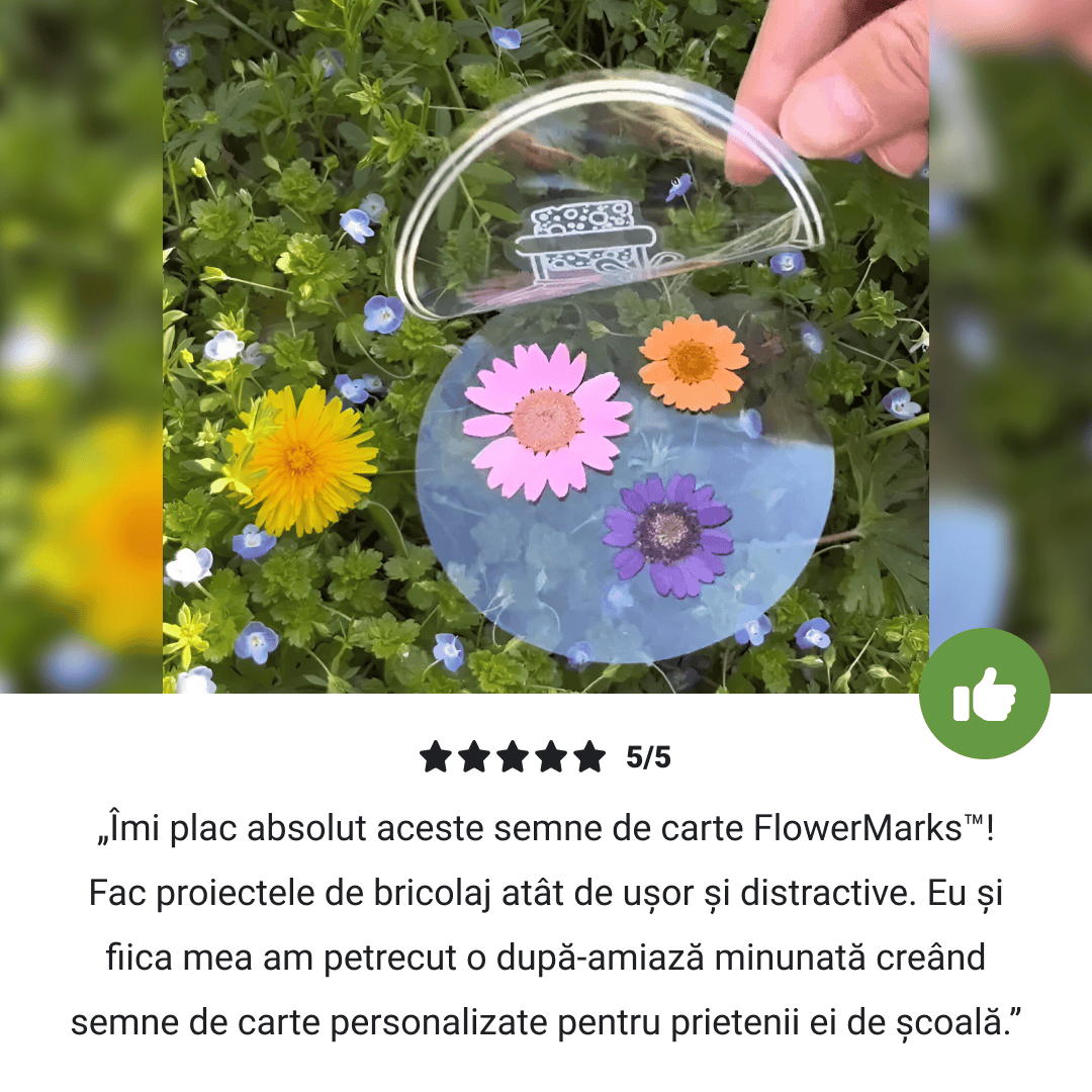 Fetiței mele îi place să aleagă flori înflorite și să le pună în aceste marcaje. E minunată! 🙂