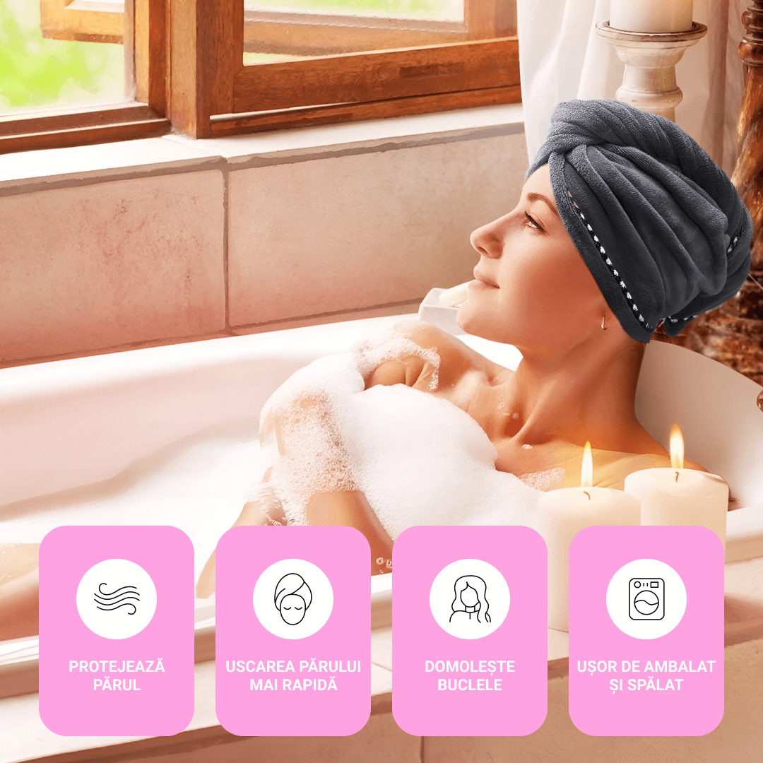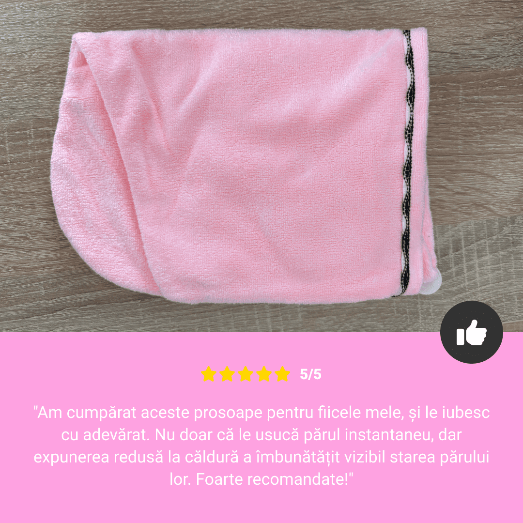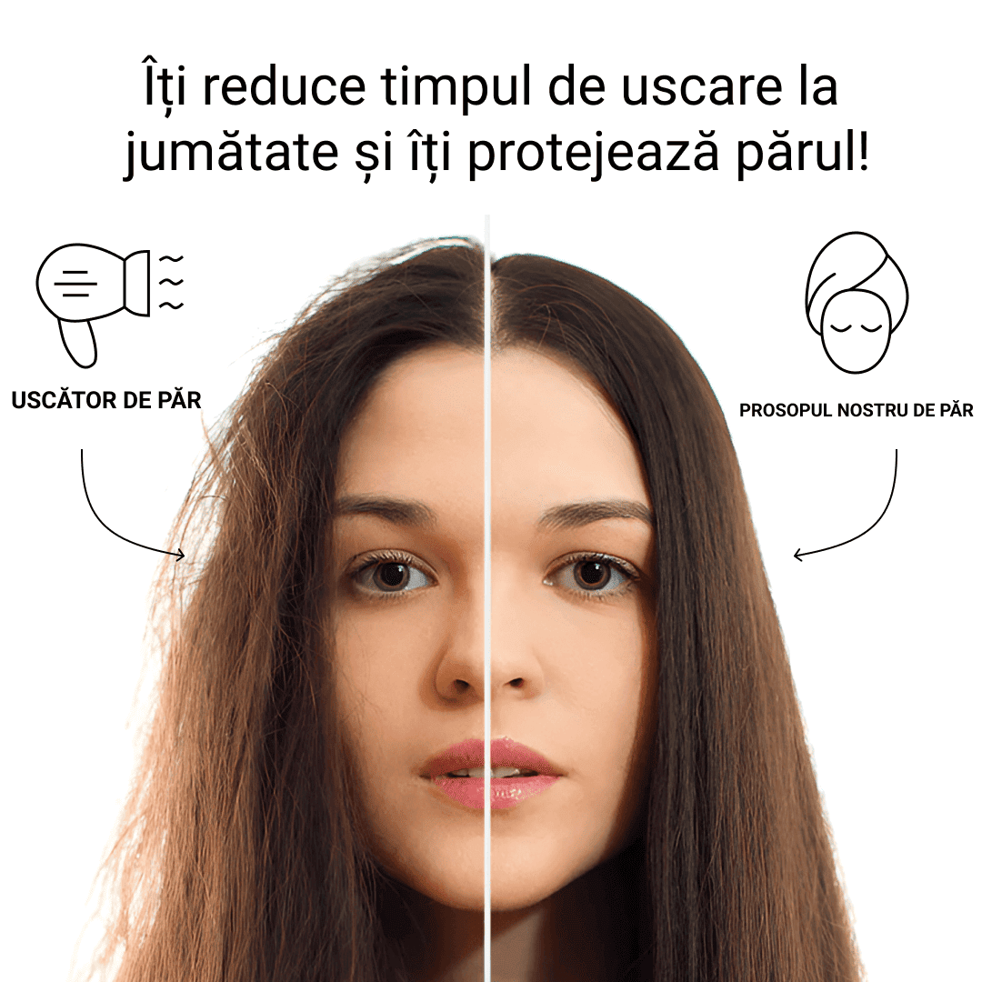 Super absorbant, usuca super rapid, iti economiseste timpul uscandu-ti parul 100% natural. Nu mai ai nevoie de uscatoarele electrice. Reduce riscul varfurilor despicate.