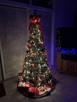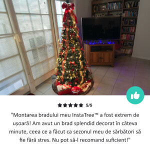 După ani de zile în care am folosit, brazi artificiali imenși, soțul meu s-a săturat. Avem deja 70 de ani și este destul de greu să mai urcăm în pod unde avem decorațiunile. Când am văzut acest pom de Crăciun, chiar mi-am dat seama că va fi o opțiune bună pentru noi. M-am hotărât împreună cu soțul să îl comandăm. A ajuns imediat, și în stare foarte bună. Instrucțiunile au fost ușor de urmat. Chiar am fost impresionată de acest produs! Arată minunat cu acele luminițe, panglici și globulețe!