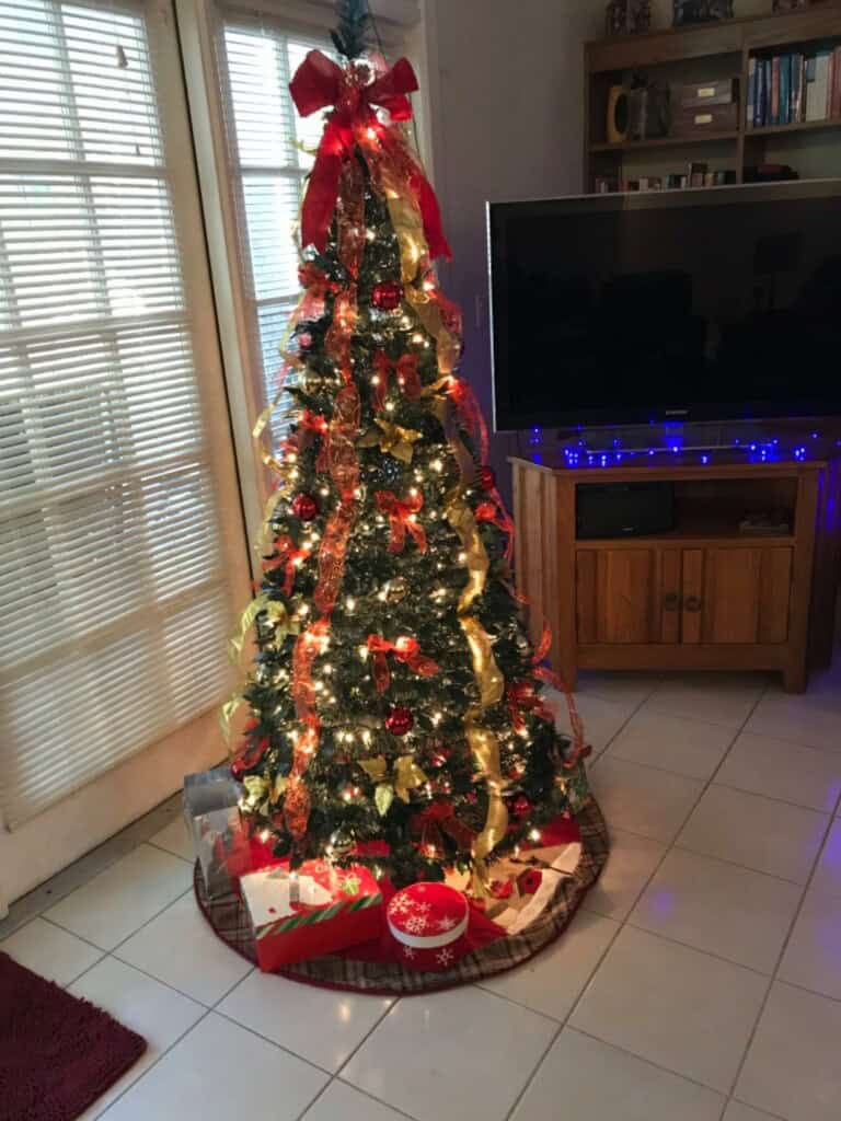 Uite, sunt mai în floarea vârstei(nu-mi place să spun mai în vârstă) și în fiecare an am scos clasicul brad artificial IMENS cu decorațiuni gata puse, și am petrecut ore întregi decorându-l singur (fără copii, fără ajutor). Luminile au încetat în cele din urmă să funcționeze, așa că a trebuit să adaug și instalație normală. A fost un chin! Apoi am văzut acest pom și am decis să încerc ceva mai simplu și mai puțin complicat. Sincer, îmi place. Mi-a luat două încercări să îl pot monta bine prima dată și am petrecut zece minute adunând arcurile și panglicile împreună și. a ieșit super! Este înalt, este frumos și sunt foarte mulțumit de rezultat. Luminile într-adevăr sunt așezate foarte frumos și există o mulțime de spațiu dedesubt pentru a pune cadouri mici, ceea ce este un plus. Am folosit materialul obișnuită pe care îl așez sub brad pe care îl folosesc în fiecare an, și a încăput perfect. Nu cred că ar ține un vârf de pom foarte greu, dar sincer, nu-mi pasă. Are o coroană destul de lată, este frumos, elegant și ușor de deschis pentru a accentua partea de sus. Chiar dacă am fost puțin sceptic legat de preț, acum cred că merită. Cutia în care a venit este perfectă pentru depozitarea acestuia. Recomand acest pom oricui s-a săturat să petreacă ore în șir la decorare şi apoi ore şi ore în şir dându-le jos.