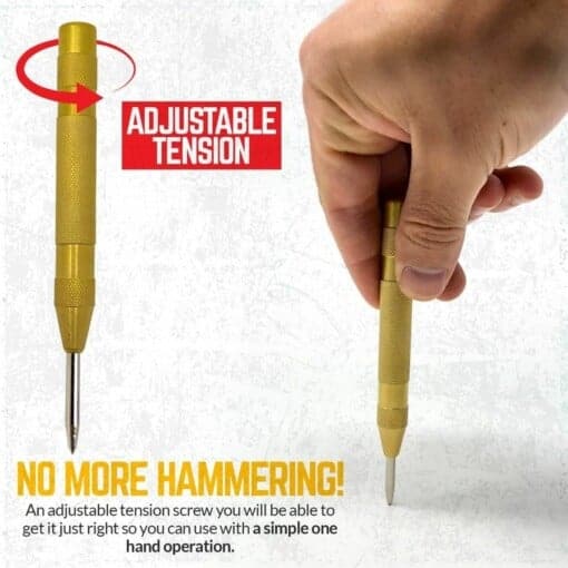 - Acest poanson central automat este o actualizare față de poansourile manuale prin introducerea unui mecanism cu arc care permite adjustarea presiunii pentru diverse materiale.