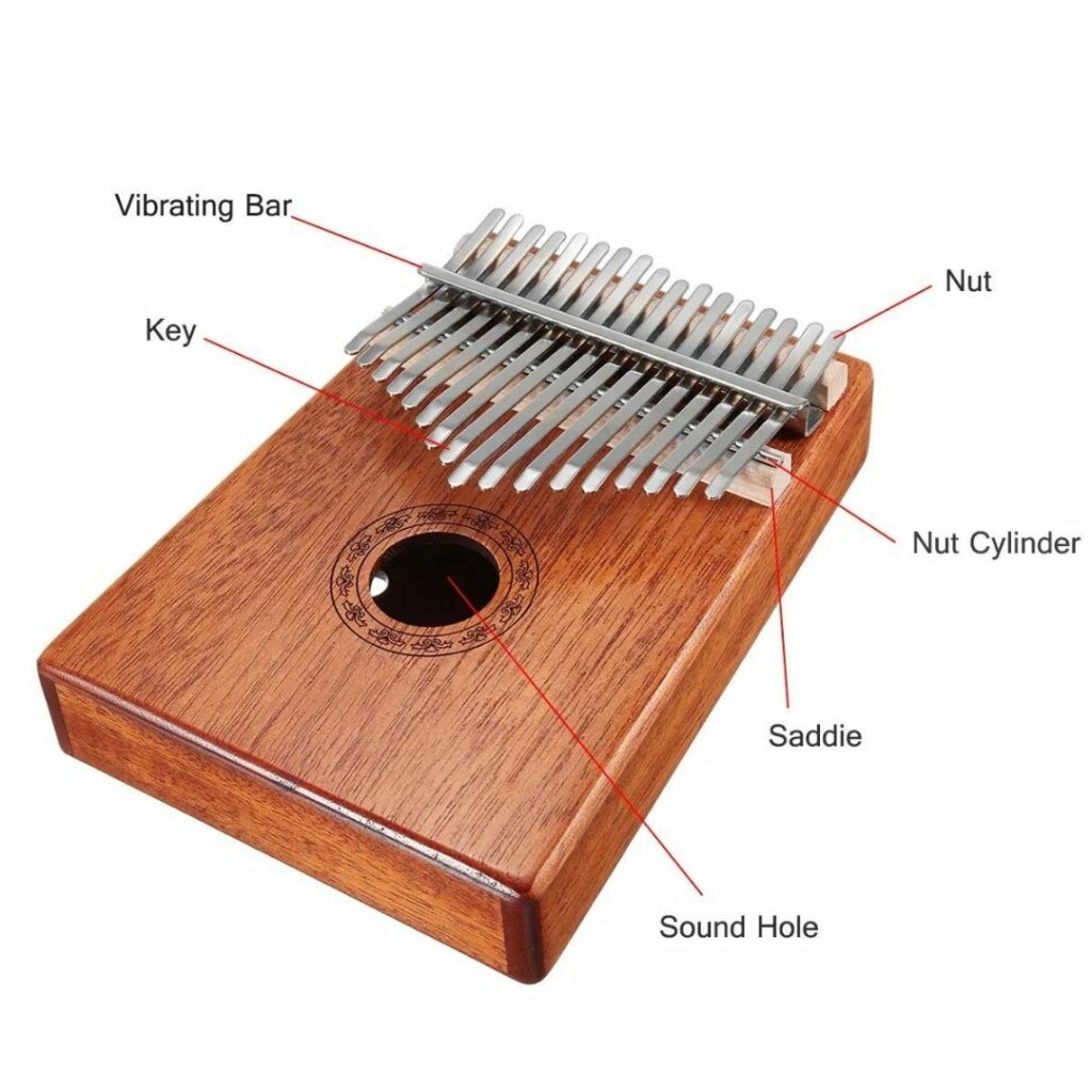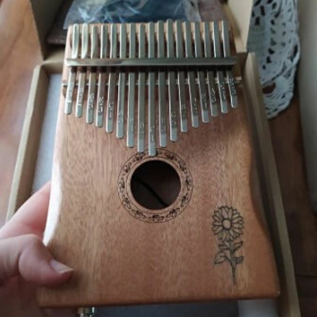 - Acest instrument frumos lucrat manual este nativ din Africa și este cunoscut pentru abilitatea lui de a produce sunete frumoase cu doar o simplă atingere pe tastele aurite.