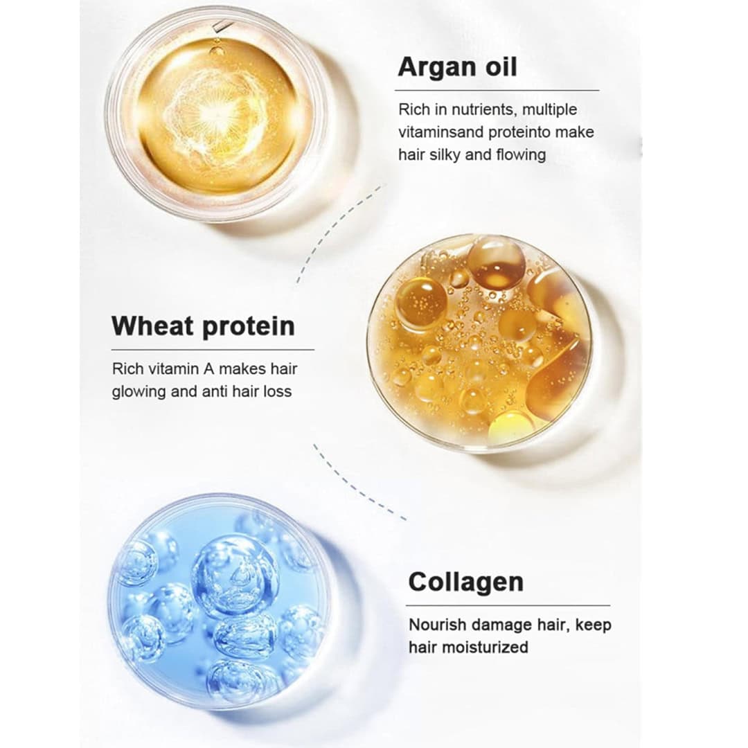 - Hidratare și Strălucire Intensă – Îmbogățită cu ulei de argan și colagen pentru a reține umiditatea și a oferi un finisaj mătăsos și strălucitor.