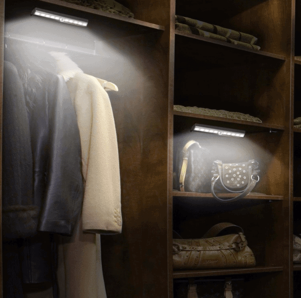 Am un dulap foarte lung și întunecat, cu o lampă în față și fără lampă în spate. Acestea sunt linii de lumină sensibile la mișcare, pe care le puteți folosi oriunde. Durează doar un minut pentru ca echipamentul să se dezlipească de banda adezivă și să se lipească pe orice suprafață. Apoi, luminile se aprind și se opresc, făcând încărcarea super ușoară – cablul USB inclus. Îmi place foarte mult să le pot aprinde doar în întuneric sau în timpul zilei.