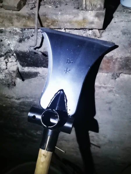 Prin simpla ajustare a poziției mânerului, se poate transforma într-un topor, sapă, seceră sau lopată.