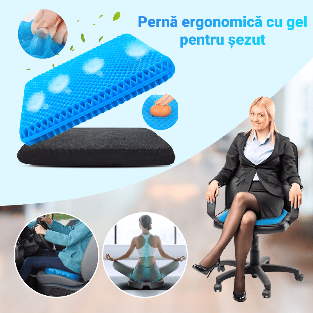 DESIGN ERGONOMIC: Designul fagure păstrează perna rece, fără a compromite confortul. Gata cu transpirația pe scaun!