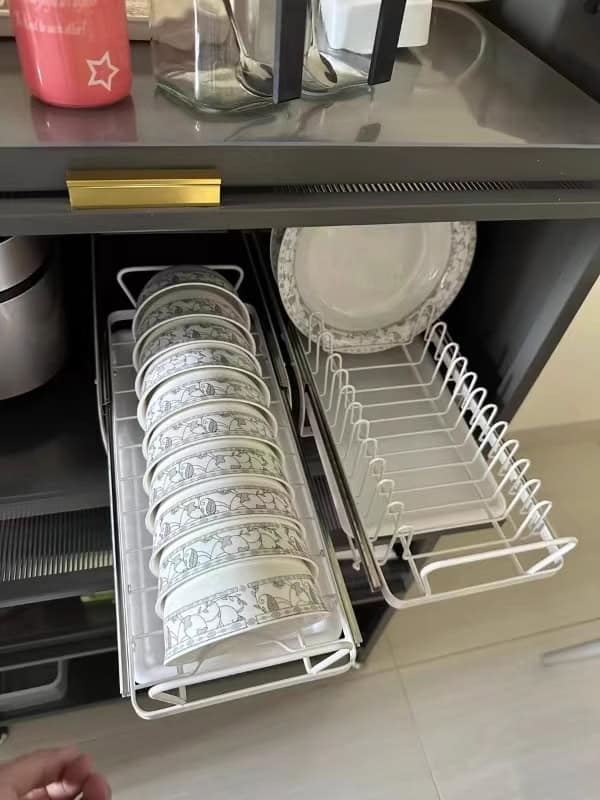 Nu mai trebuie să îngrămădesc farfuriile și bolurile. Cu acest design extensibil, accesul este mult mai ușor! Perfect.