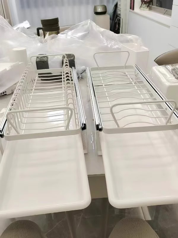 Perfect! Le-am luat pe amândouă și merită! Nu mai trebuie să aștept ore întregi ca farfuriile să se usuce complet înainte de a le pune în sertar, deoarece are tava de scurgere detașabilă sub farfurii!
