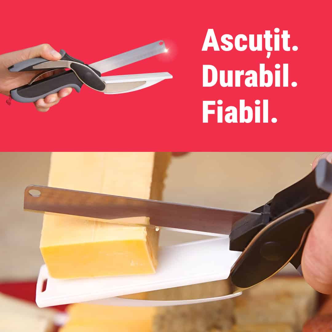 • Design compact: Foarfecă și tocător într-un singur instrument practic.