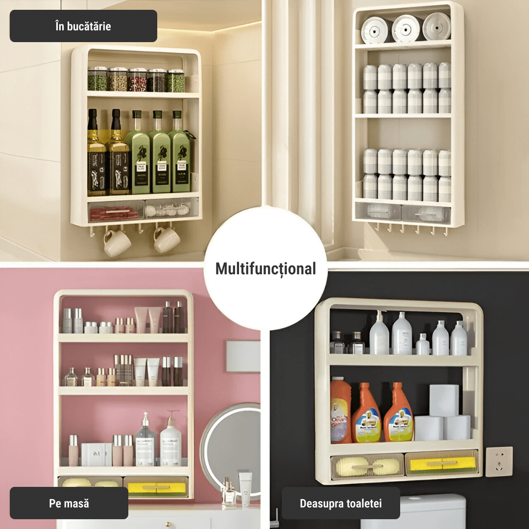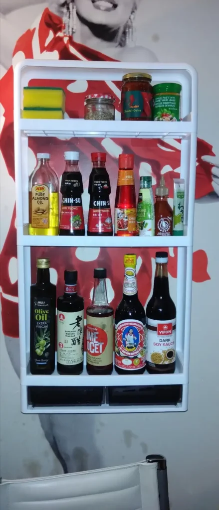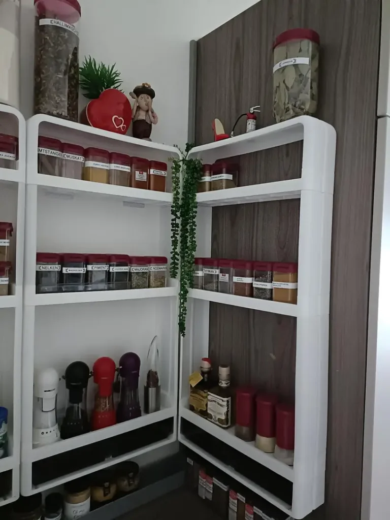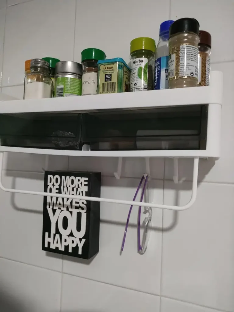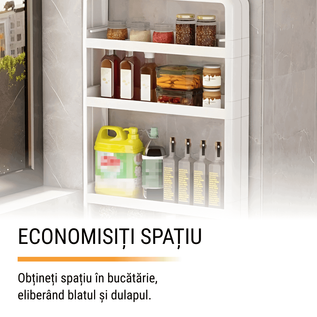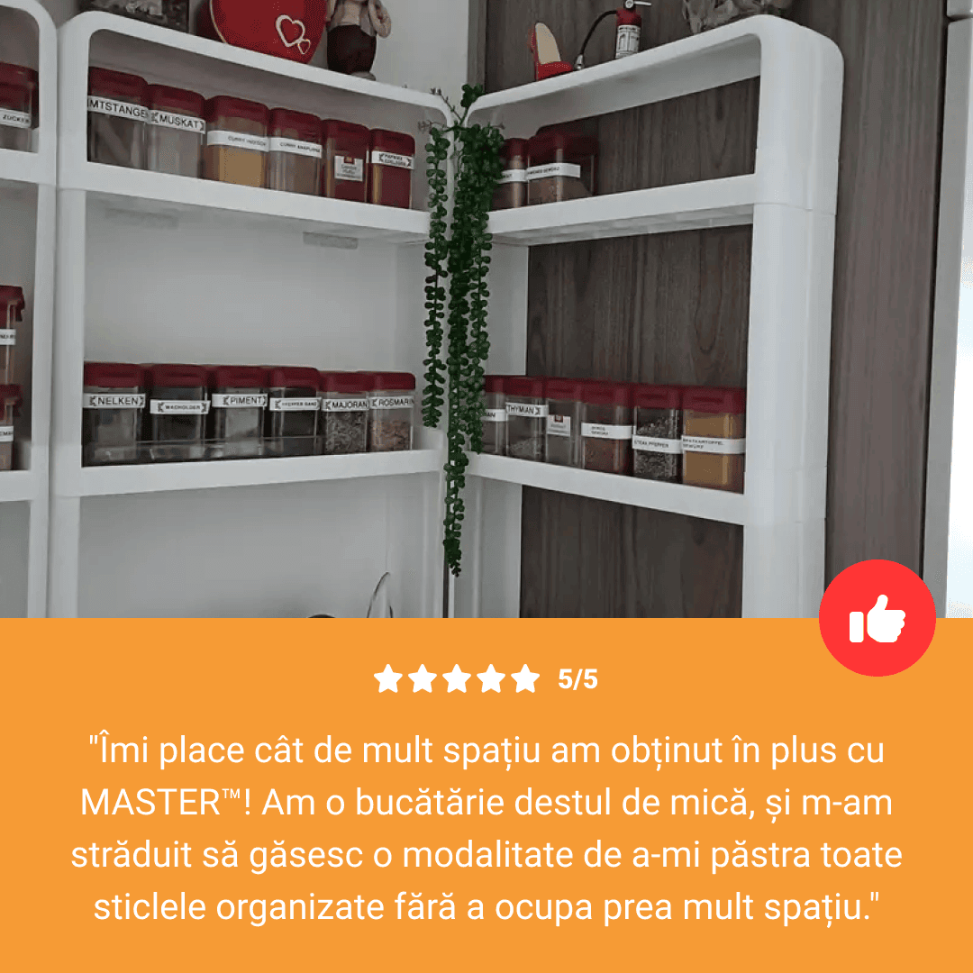 ,,Perfect pentru bucătăria mea, deoarece frigiderul este lângă plită și cuptor. Economisiți spațiu în cămară, iar condimentele sunt organizate mai bine și ușor vizibile. Organizatorul pentru bucătărie este foarte robust. ”