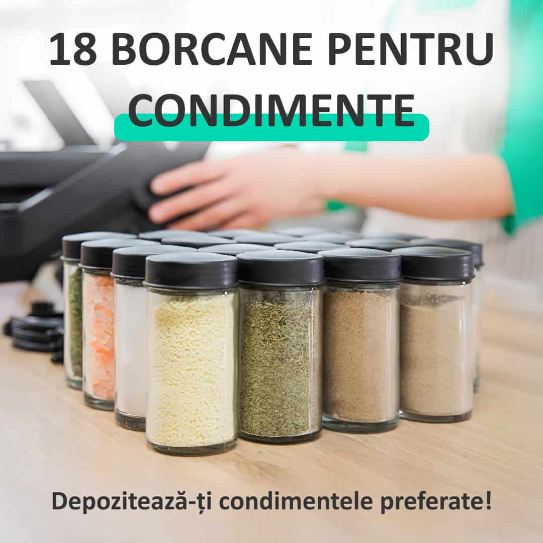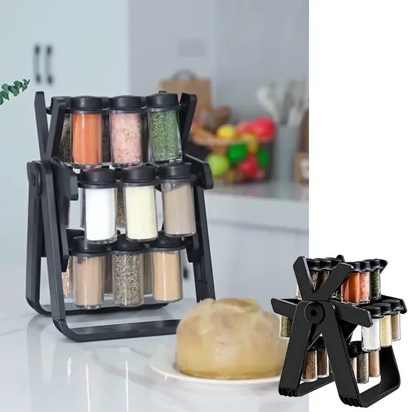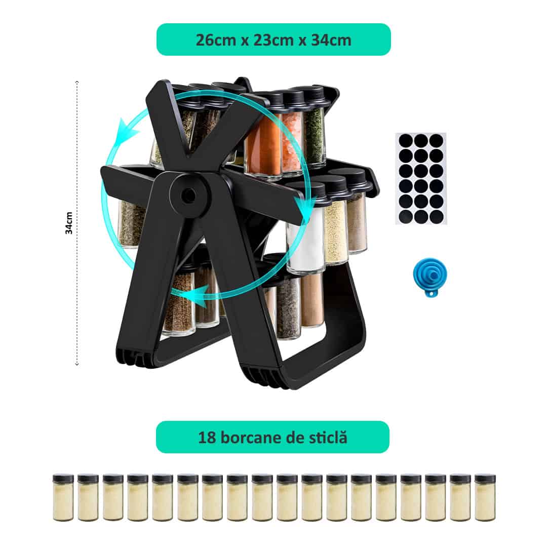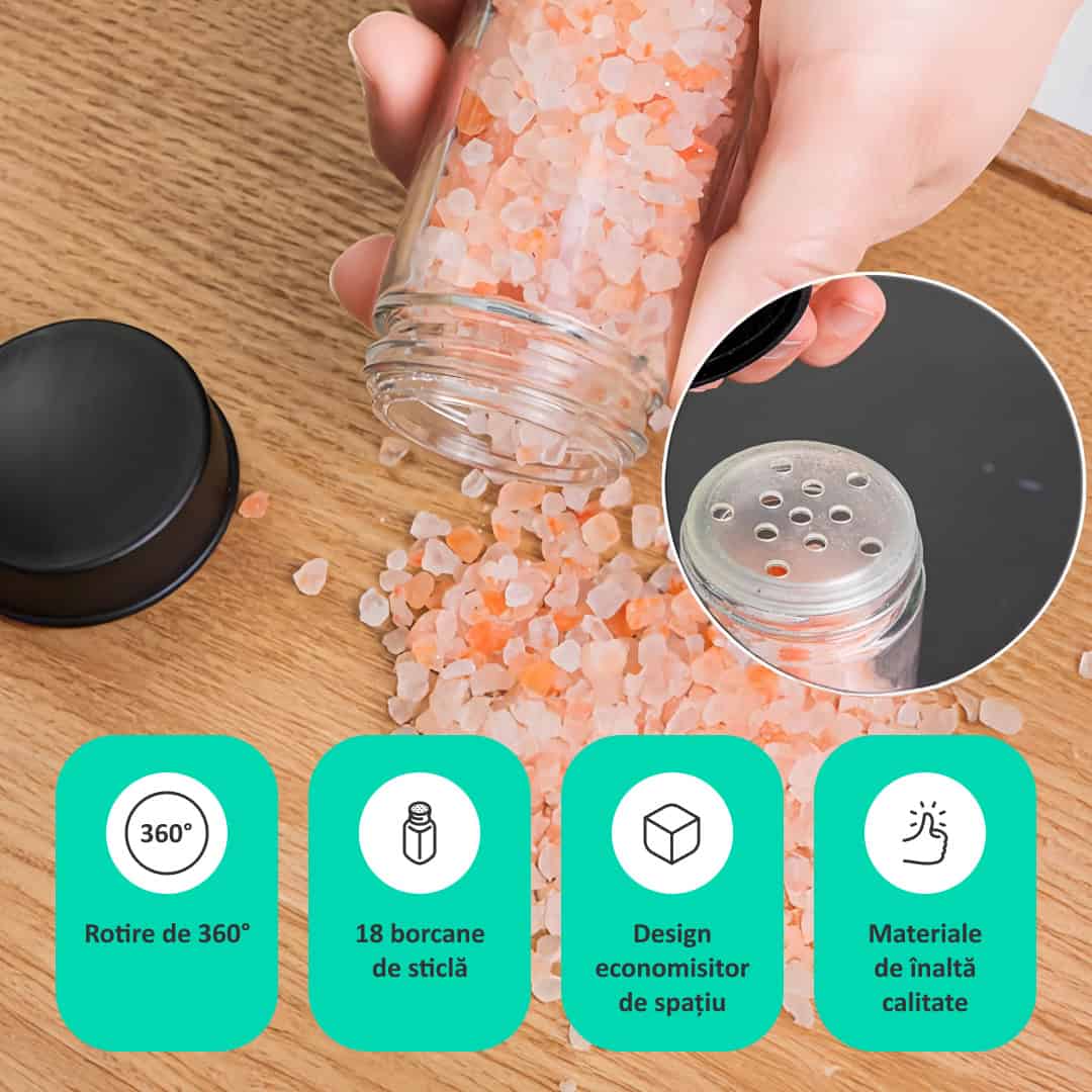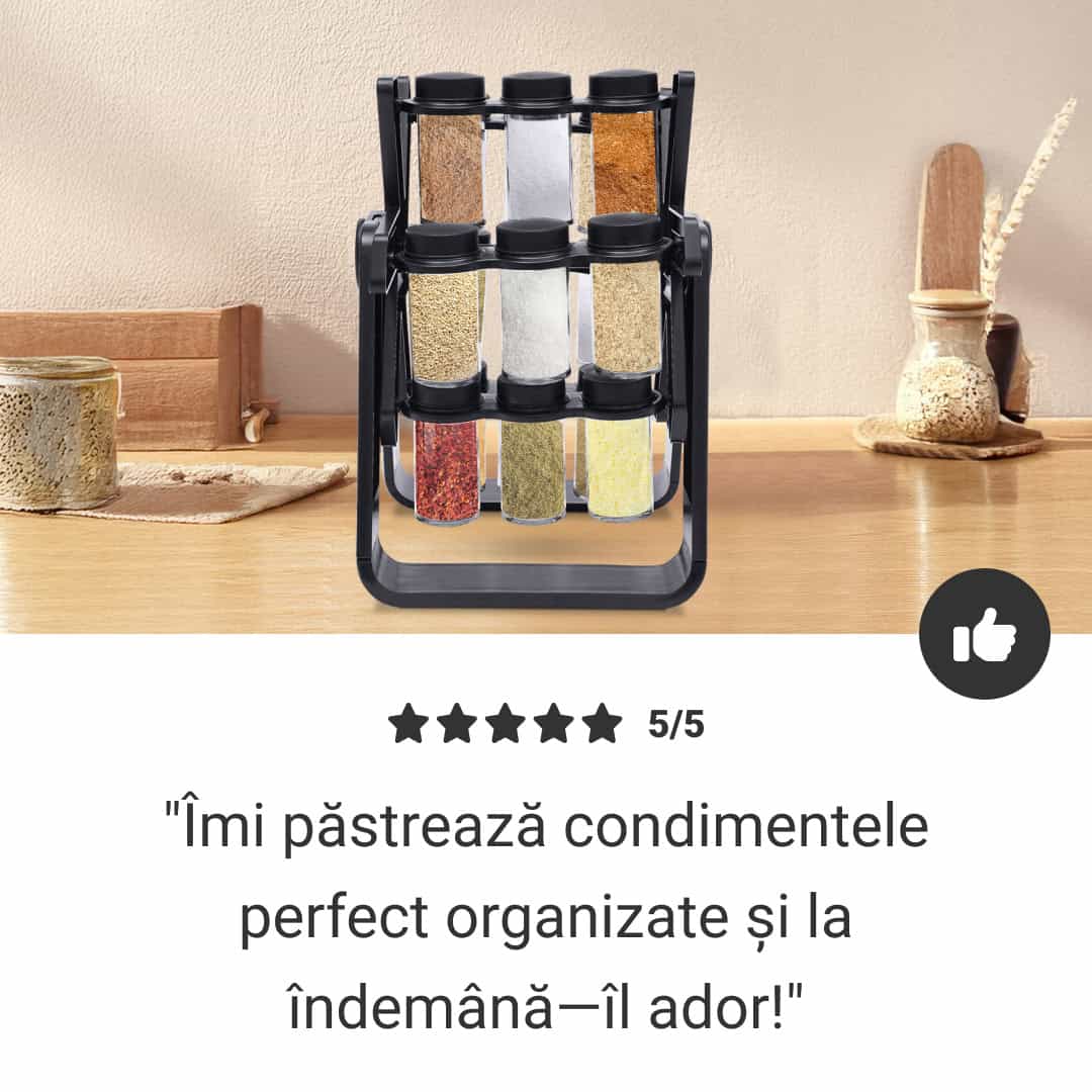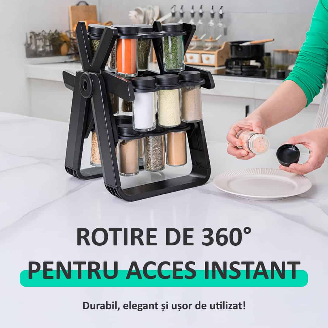 - Acces rapid: Rotirea la 360° îți oferă o vedere completă a tuturor condimentelor.