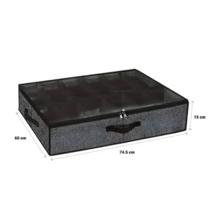 Organizează-ți pantofii și economisește spațiu cu acest organizator practic care se potrivește perfect sub pat. Capacului transparent permite o vizualizare ușoară, în timp ce mânerele rezistente facilitează mutarea.