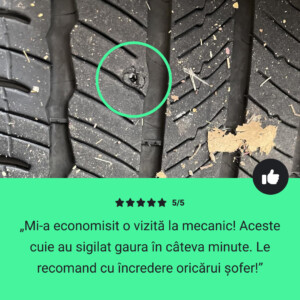 Am găsit un cui în anvelopa din spate a BMW-ului meu 1200GS. Când am oprit ca să mă uit, și am observat că scăpa aer. Am fost într-o călătorie lungă și mi-am amintit că am cumpărat aceste cuie de reparare a anvelopelor cu luni în urmă. Aveam clești, o șurubelniță Phillips, o pompă și un cui din acesta (Am folosit unul mare). Am scos cuiul și a ieșit mult aer. Am înșurubat cuiul de reparații și l-am lăsat să stea timp de aproximativ o oră. Apoi am condus acasă aproximativ 200 de kilometrii, pe autostradă cu 75-80 km/h , iar cuiul de reparații a ținut bine și anvelopa nu a mai scăpat aer.