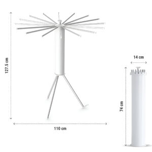 Ador acest uscător de rufe! Ține mai multe haine decât mă așteptam și se depozitează ușor. Perfect pentru apartamente mici.